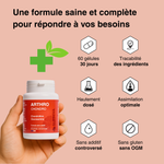 La formule ARTHRO-CHONDRO, à base de chondroïtine et de glucosamine, est spécialement développée pour soutenir la santé articulaire, améliorer la souplesse et préserver mobilité au quotidien.